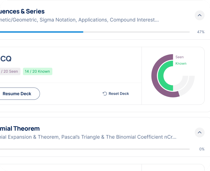 Develop your understanding using custom-built flashcards, perfect for quick study sessions on desktop or mobile app.